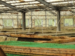 手前から、事務所兼管理棟、養殖場、裏手に親池があり夏場に産卵する砂場もあります。